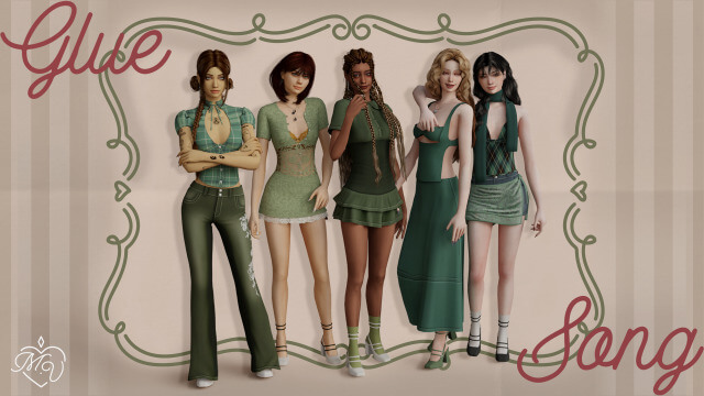 Glue Song: January Colection New year, new collections! After the holidays i’ve wanted to do something more cute, more sexy, so this January collection was born, I just recently heard some songs of Beabadoobee, and glue song was such a cute song that I created a collection around this song, Glue song is full of cute, bows, and coquette vibes. Glue Song brings you: 8 Total Pieces: 3 Dress / 2 Tops / 1 Skirts / 1 Pant / 1 Shoes and socks TY & LY